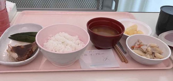 一般食 投稿日:2026年1月17日 作成者: takumi_rex2000 返信 #Type-I 一昨日の昼から食べている5分食、今日の朝食分で6回目。その後に採血があり、 お昼ご飯として運ばれて来たのが・・・。 本日のメニュー、一般・米飯200g。 入院10日目にして、ようやく辿り着いた一般食。献立的にはオクラ&赤魚の煮魚、 ジャガイモの煮っ転がし、つみれの入ったお味噌汁に、デザートとしてパインを切 ったモノが。無論、まだ病院食なのは間違い無いが、少し人間(^^;)に戻れた気が して嬉しい。 ・・・そろそろ娑婆に戻りたいなぁ、さすがに(^^;)。