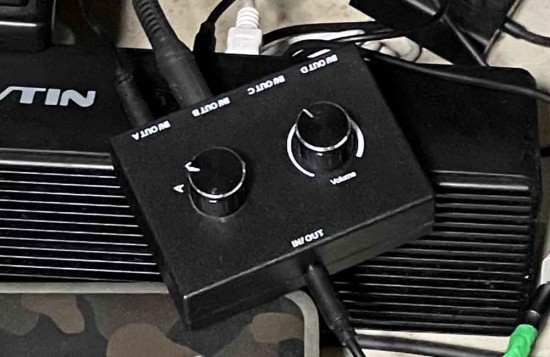 ステレオの音声信号が4本入力可能で、右のノブでセレクトされた信号を1系統分