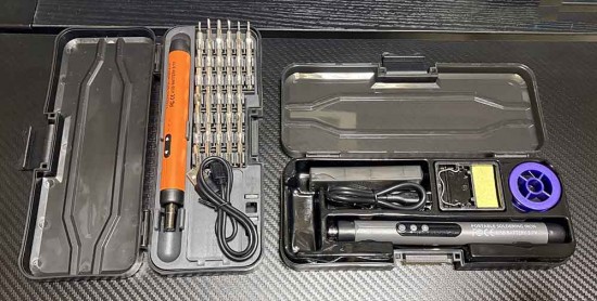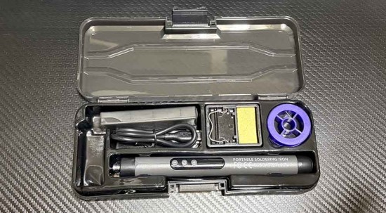 専用のケースの中にコテ置き台・USBケーブル・コテ先ケース・ハンダが納ま