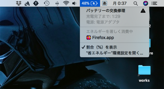 一昨日の夜、普段使いしているMacBook Air・11インチに妙なアラートが。
