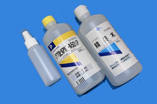 コンタクトレンズの清掃などに使う精製水と、50%のイソプロピルアルコール、