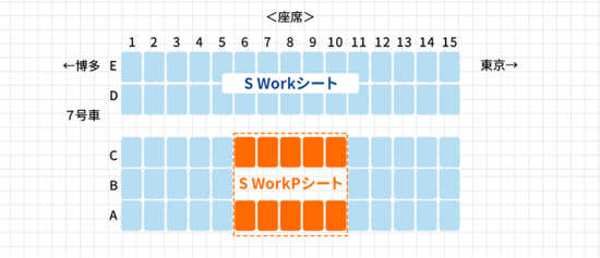 S Work車両のうち、↑↑の10席しか存在しない人気席。料金は通常の指定券