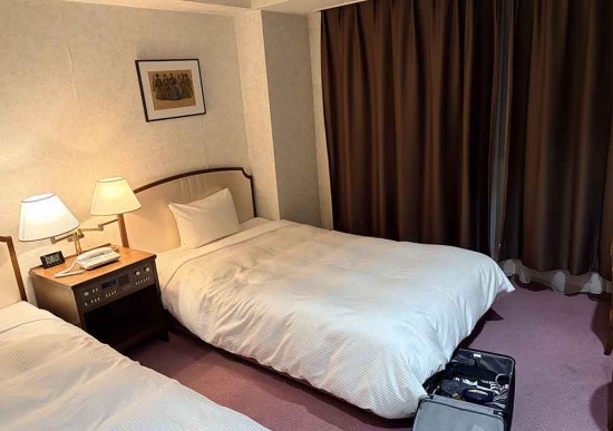 ダブルベッドが2台置いてあるツインルームはかなり広く、僕の好み。